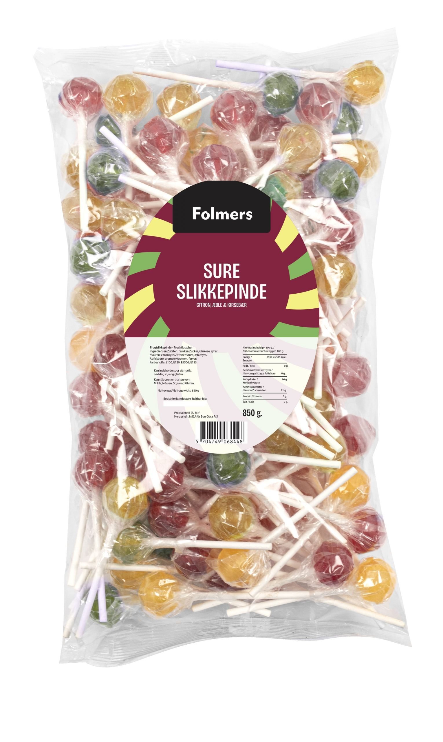Folmers sur slikkepind, 3 varianter, 850 g. (10 g. pr stk.)
