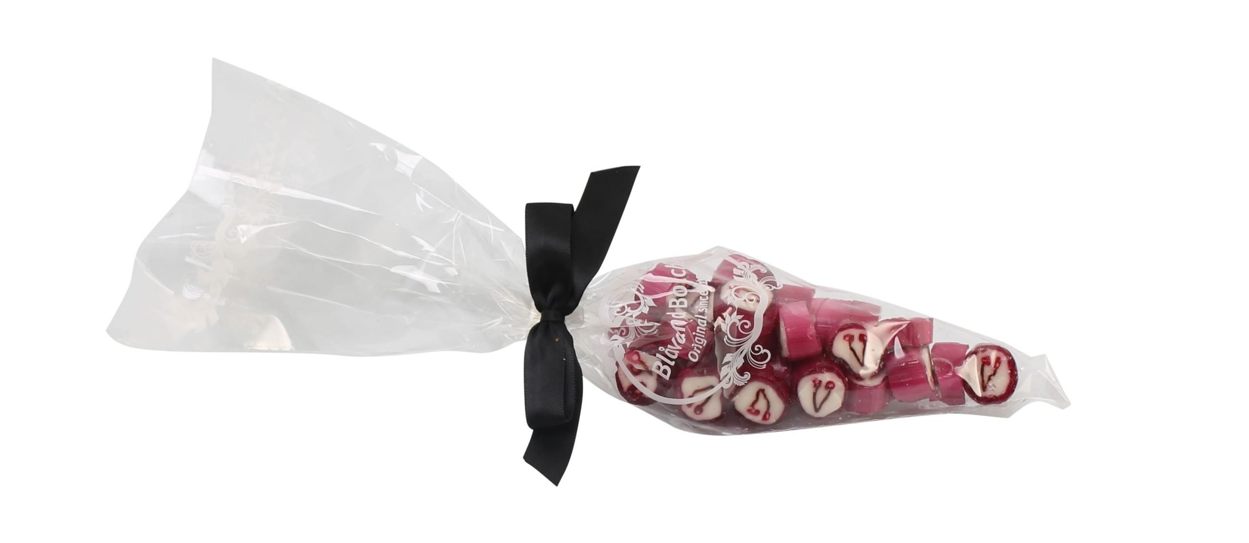Spidspose m/sort silkesløjfe, Kirsebær rox bolcher, 100 g.