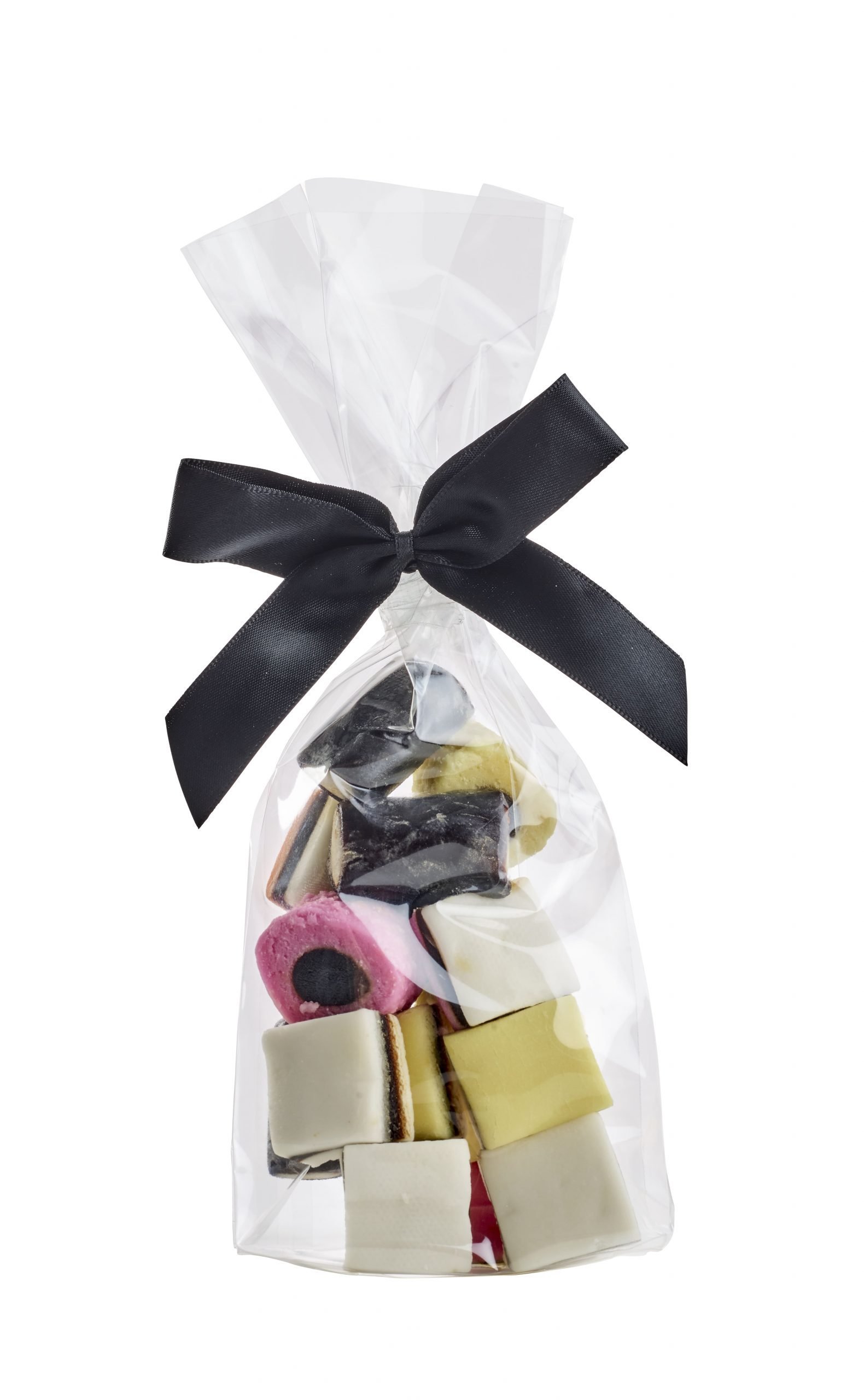 Cellofanposer m/ sort sløjfe, Lakridskonfekt, 90 g.