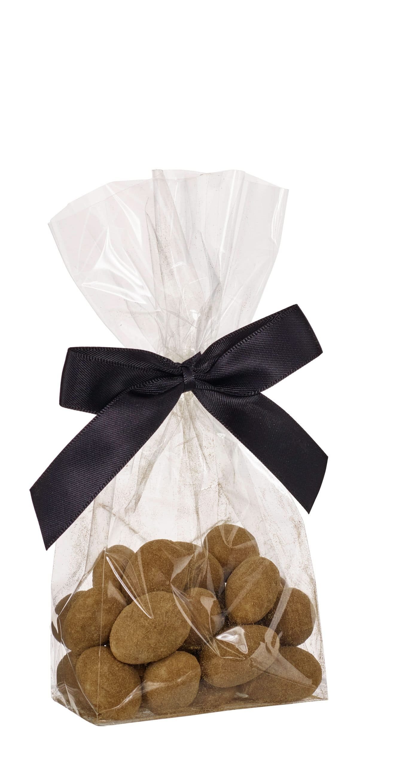 Cellofanposer m/ sort sløjfe, Lakridsmandler, 90 g.