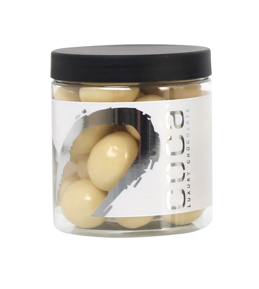 Silverheart dåse sølv/hvid, Mandler m/ hvid chokolade, 150 g.