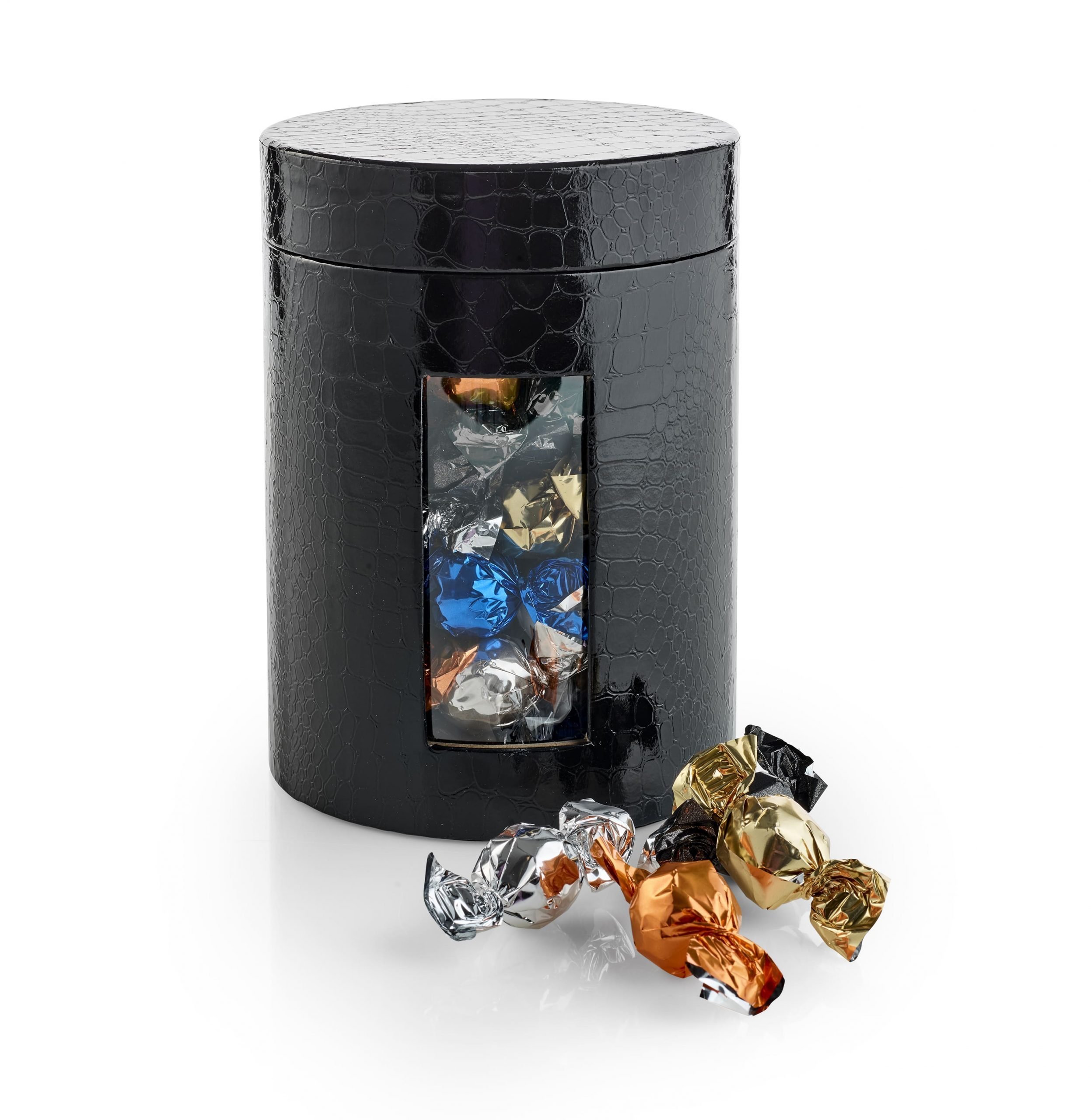 Mega Sort Rund Hatteæske m/ Vindue, Chokoladekugler, 1000 g.