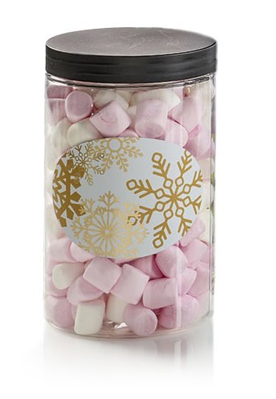 Dåse - 90 gr. Mini Marshmallow m/ guld snefnug label