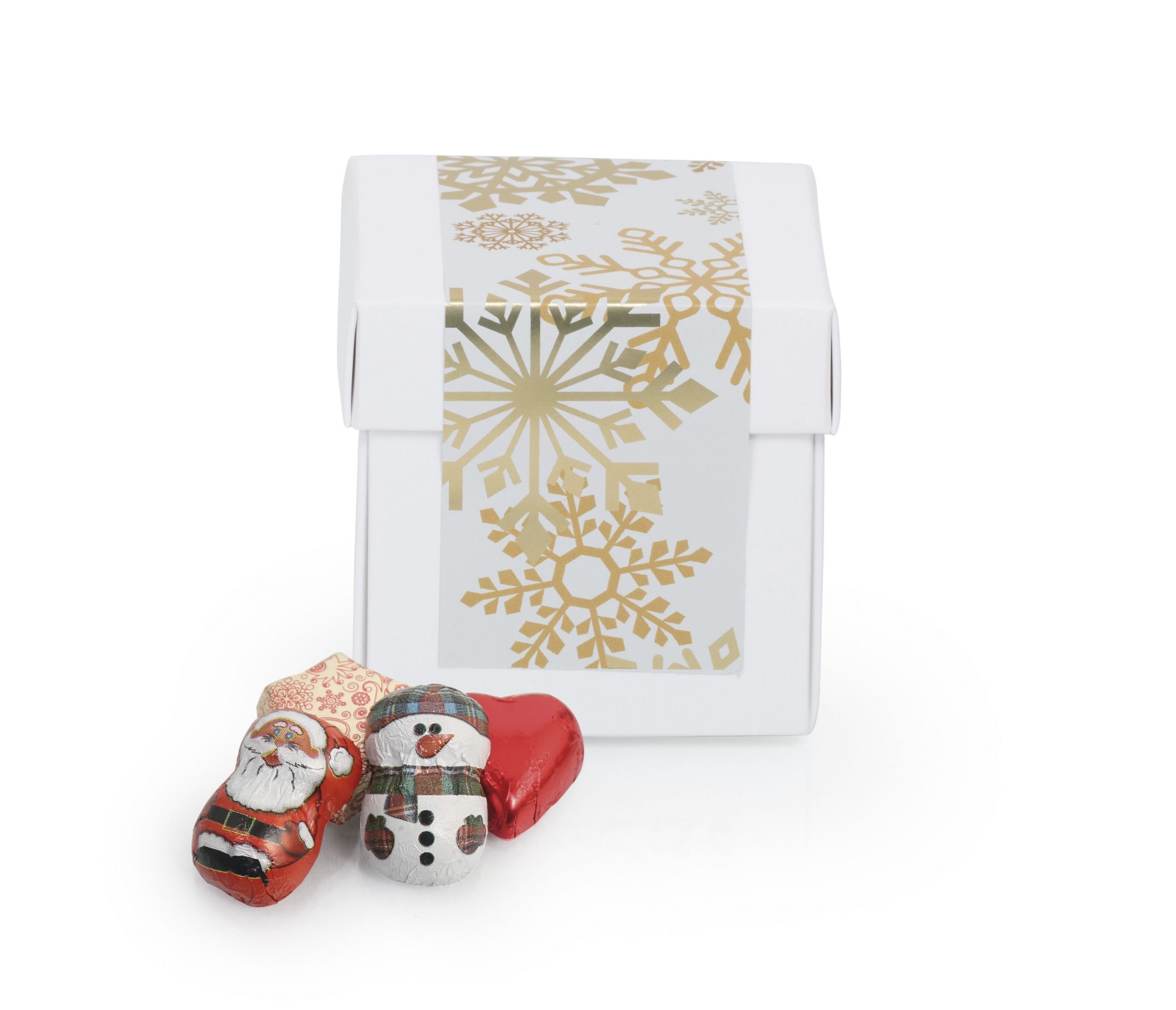 Hvid Surprise-box m/ julelabel - 90 gr. 8 stk. Røde Hjerter