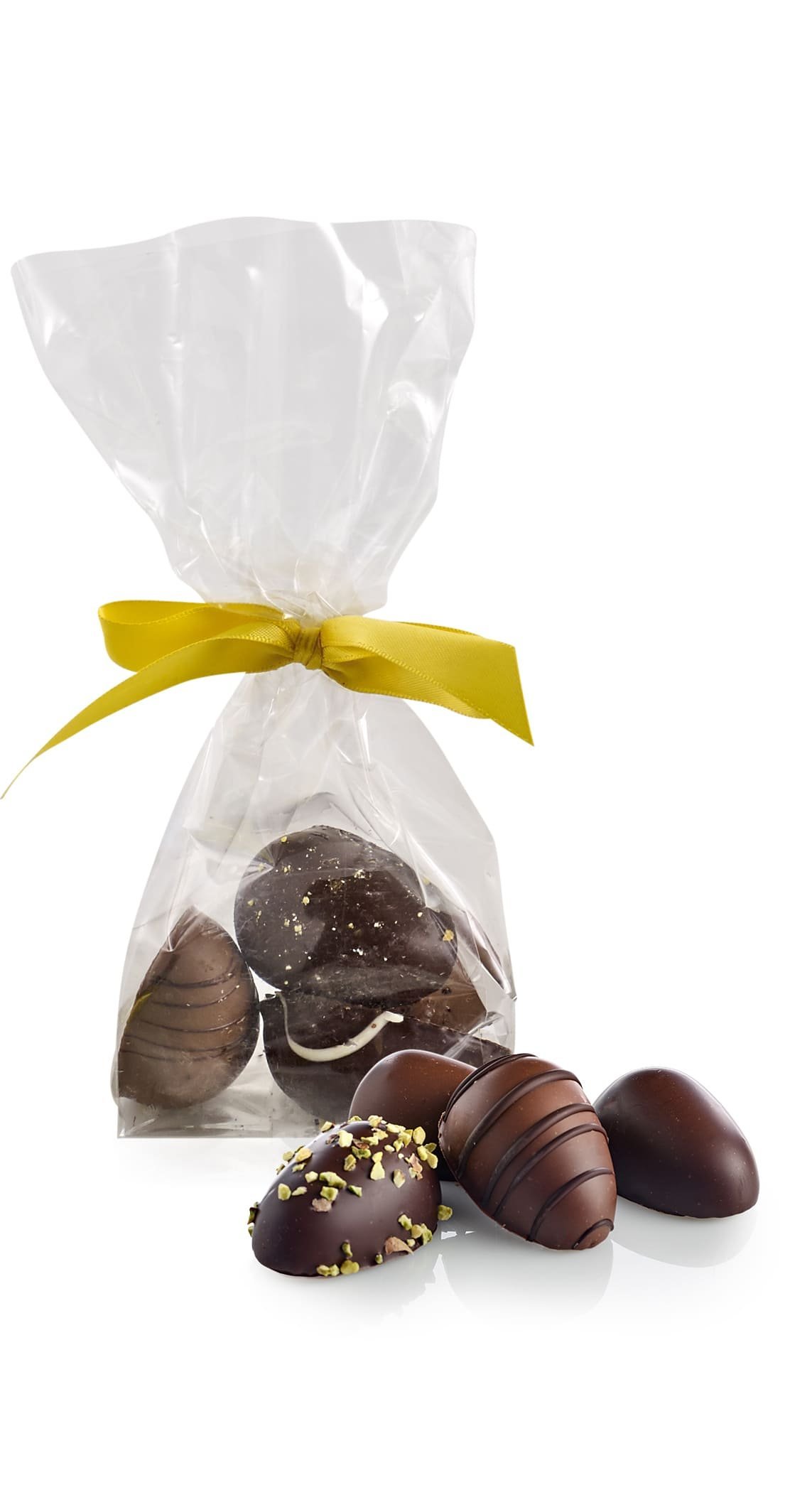 Cellofanpose m/gulsilkesløjfe, 4 stk. Marcipanæg, 80 g.
