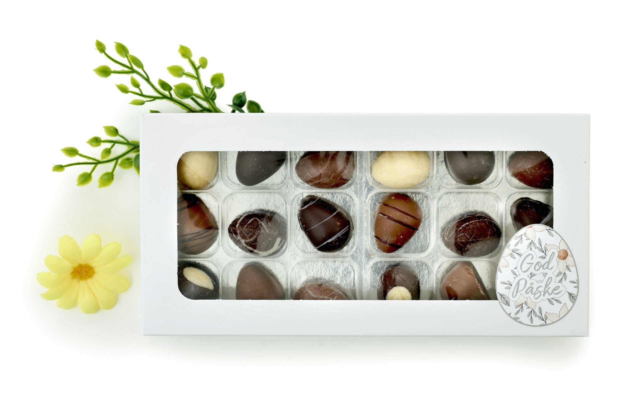 Hvid rudeæske, 18 stk Luksusæg & Marcipanæg 170 g.