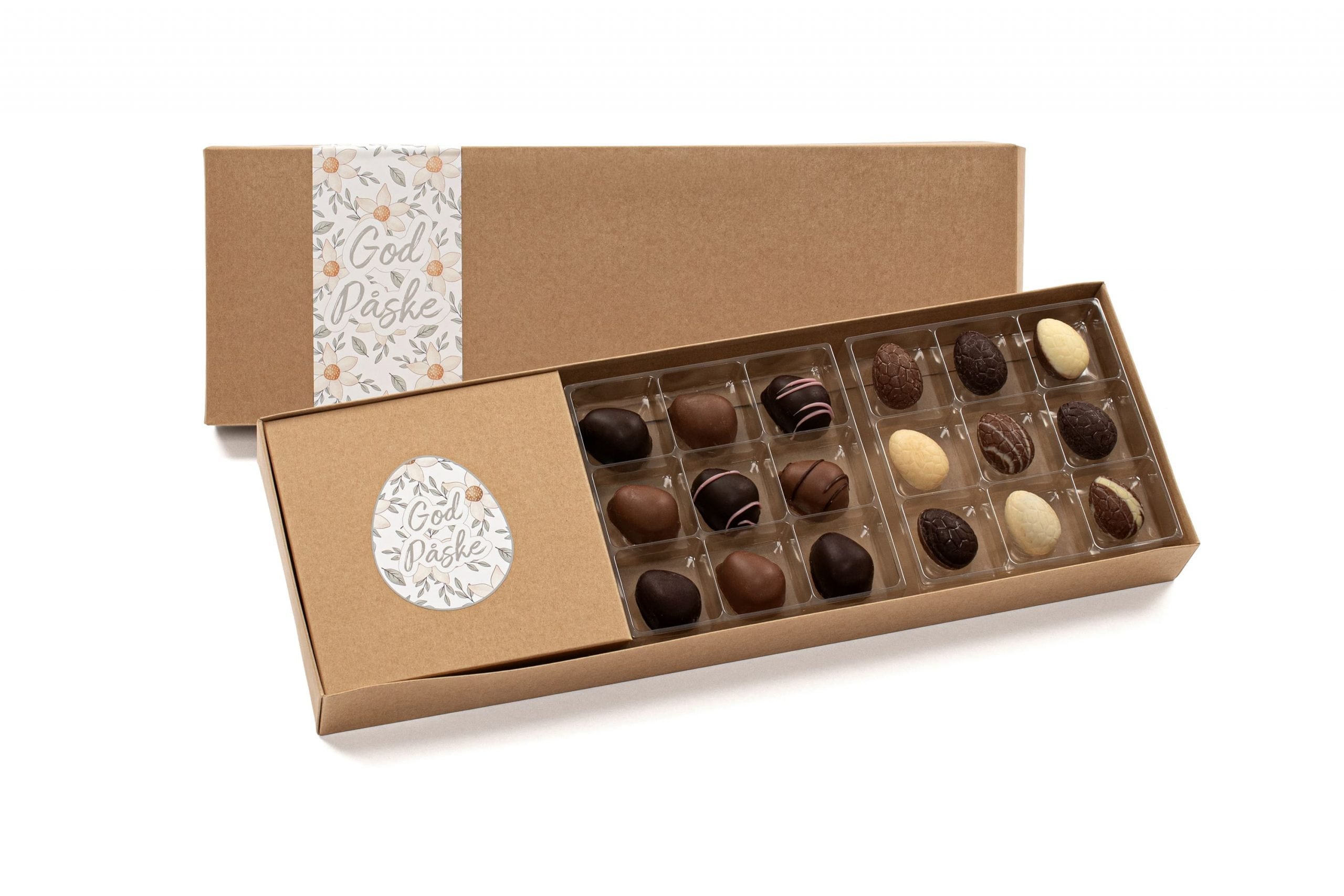 Påskeæsker Natur, 9 stk. Marcipanæg + 9 stk. Luksusæg, 170 g.