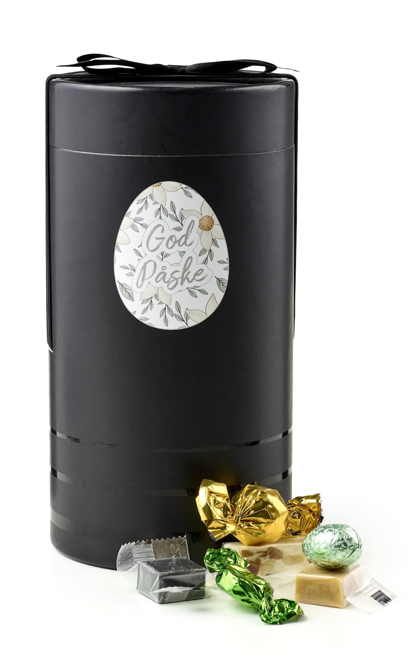 Sort aflang hatteæske m. elastik sløjfe m/ 1000 g. Forårsmix.